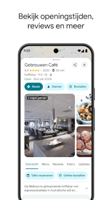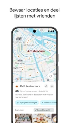 Bereid u optimaal voor op uw bestemming en activiteiten. Met Maps kunt u locaties al verkennen voordat u vertrekt. Gebruik Street View om een ingang of parkeerplaats virtueel te inspecteren. Duik dieper met Immersive View om bezienswaardigheden, parken en routes in detail te bekijken, inclusief een weersvoorspelling, zodat u precies weet wat u te wachten staat. Organiseer uw favoriete plekken in gepersonaliseerde lijsten en deel deze eenvoudig met vrienden of familie. Of u nu maaltijden wilt bestellen, een restaurant wilt reserveren of een hotel wilt boeken, de app stroomlijnt al uw plannen. En voor momenten zonder internetverbinding, zorgen offline kaarten ervoor dat u altijd de weg blijft vinden.