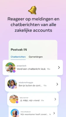 Verbind dieper met uw publiek en bouw waardevolle klantrelaties op. Deze app bundelt al uw inkomende chatberichten en opmerkingen van beide platforms in één intuïtieve inbox, waardoor u snel en efficiënt kunt reageren. Bespaar kostbare tijd en zorg voor een responsieve merkervaring door veelvoorkomende vragen te automatiseren met slimme antwoorden, zodat geen enkele interactie onbeantwoord blijft en u meer klanten bereikt.