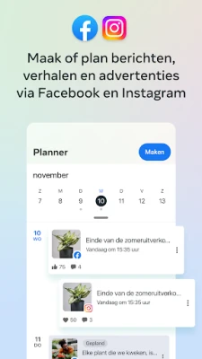 Beheer en versterk uw online aanwezigheid moeiteloos met een krachtige tool die is ontworpen om uw sociale strategie te optimaliseren. Creëer, plan en publiceer boeiende berichten en verhalen met ongekend gemak, specifiek afgestemd op zowel uw Facebook-pagina als uw Instagram-account. Van concept tot publicatie, deze oplossing stroomlijnt uw contentworkflow, zodat uw merk consistent en impactvol zichtbaar blijft over de meest relevante sociale kanalen.