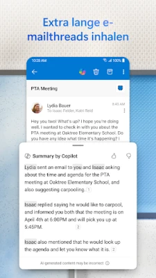 Met Outlook voor Android bent u slechts een tik verwijderd van naadloze productiviteit. Schakel moeiteloos tussen uw e-mail en agenda om snel een vergadering te plannen of uw beschikbaarheid te delen. Bestanden bijvoegen is nog nooit zo eenvoudig geweest; selecteer direct een document uit uw lijst en voeg het naadloos toe aan uw e-mail. Dankzij intuïtieve veegbewegingen en slimme filters behoudt u volledige controle over uw inbox, zelfs onderweg.