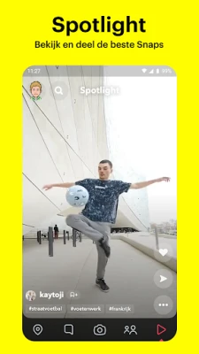 Blijf op een levendige manier verbonden met je contacten. Of je nu live-berichten stuurt, je dag deelt in Groepsverhalen, of videochats aangaat met wel zestien vrienden tegelijk – zelfs met de toevoeging van Lenzen en Filters – Snapchat maakt interactie dynamisch en leuk. Druk je vriendschap uit met exclusieve Friendmoji's, speciaal ontworpen voor jou en een vriend. Bovendien biedt de app een venster op de dag van je vrienden via hun Verhalen en de kans om te verdwalen in community-verhalen die aansluiten bij jouw interesses, aangevuld met actueel nieuws en originele Snapchat-programma's. En vergeet Spotlight niet, de plek waar je het meest boeiende en vermakelijke content van de hele Snapchat-gemeenschap kunt ontdekken, indienen en delen.