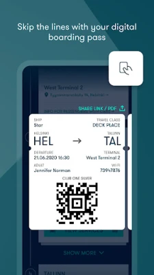 De Tallink Silja app biedt alle essentiële reisinformatie direct op je telefoon. Check eenvoudig online in en vermijd wachtrijen. Zeg vaarwel tegen papieren tickets en geniet van een zorgeloze reiservaring met alles binnen handbereik.