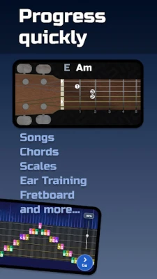 Binnen Timbro vind je een rijkdom aan functionaliteiten die zorgvuldig zijn ontworpen voor een effectieve leerervaring. Van uitgebreide gitaarlessen voor alle niveaus, die je wegwijs maken in akkoorden en hun progressies, tot het perfectioneren van toonladders en arpeggio's om je vingervlugheid te verbeteren. De app bevat een brede bibliotheek aan gitaaroefeningen, heldere gitaartabs voor efficiënt leren, en een fretboard-memorietrainer om de noten op je gitaar snel te onthouden. Ontwikkel je muzikale gehoor met gehoortraining en de 'speel-op-gehoor'-functie, beheers iconische riffs met de rifftrainer, en leer volledige liedjes met speciale songlessen. Een zeer nauwkeurige gitaartuner is inbegrepen, en je kunt je voortgang volgen om je ontwikkeling in de gaten te houden.
