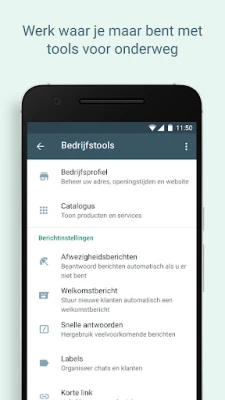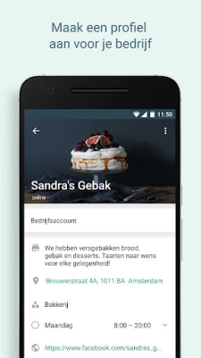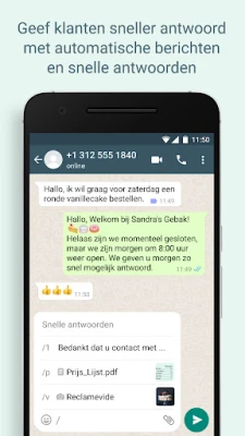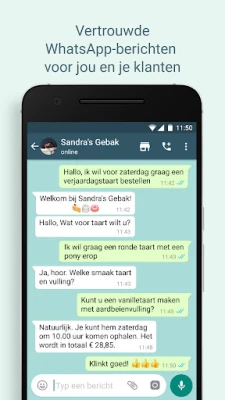 Optimaliseer je zakelijke communicatie met WhatsApp Business. Geniet van de vertrouwde WhatsApp-ervaring, aangevuld met krachtige tools. Werk slimmer, bouw vertrouwen op en stimuleer bedrijfsgroei met automatische antwoorden, efficiënte labels en deel aanbiedingen via de statusfunctie. Beheer gesprekken naadloos.